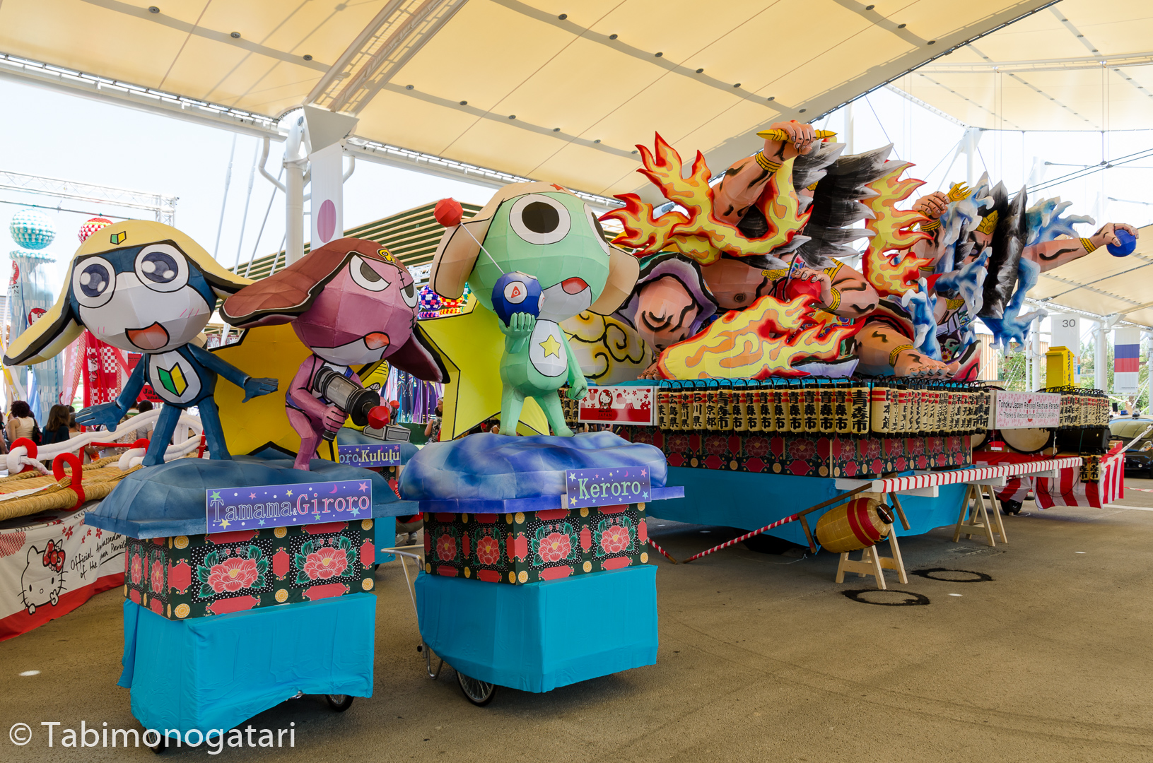 After the satisfying meal we headed to the Japanese pavilion just a few houses away. On the main street were several props lined up for the parade later the day.
