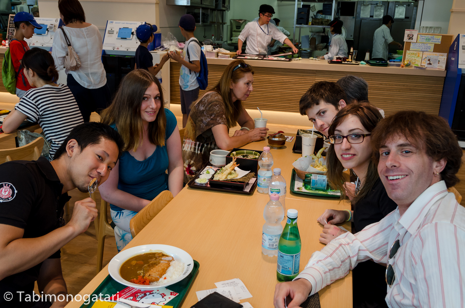 After that experience we were sent off to the food court – what a clever insight of the designer. Obviously we went for another bite and met up with the people from before to share our meal. I took the opportunity to have a MOS Burger, which I had last time when I was in Kumamoto. The others went for the same, as well as curry, tempura and soba. To practise my Japanese I talked a bit with the Japanese man, who was from Kumamoto and lives in Italy now. He was very happy to hear that I visited his home prefecture.