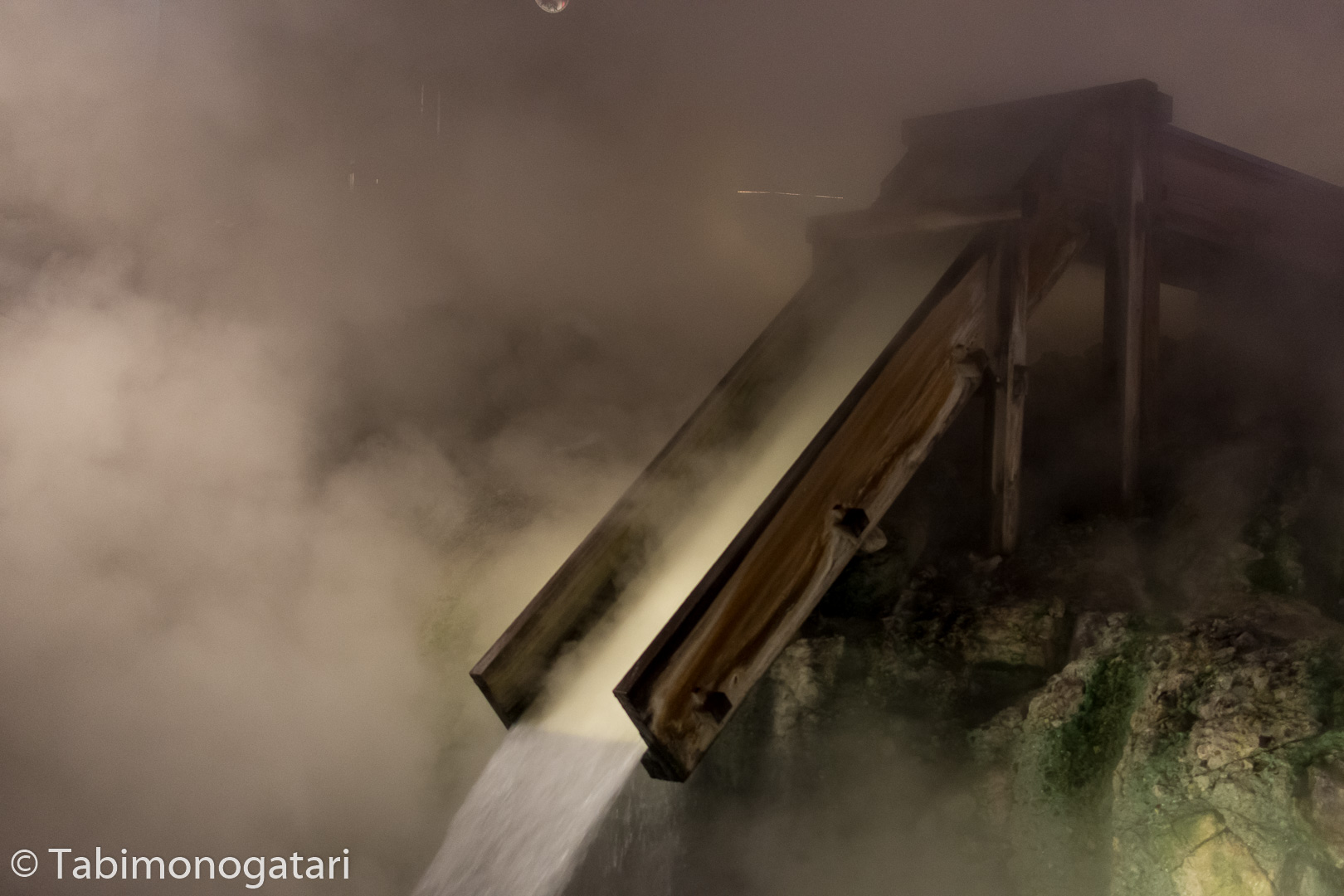 The town is rather compact and easy to navigate, thanks to its central landmark, the Yubatake. When the sulphur-rich hot water reaches the surface, it has a temperature of 80 to 90 °C. Therefore, the water is directed over wooden conduits before it is transferred to the several baths and ryokans. Due to the sulfur-rich composition of the water, a characteristic scent of sulphur fills the whole town. Actually, I did not find it unpleasant or overwhelming, but this might be due to my regular exposure to sulphur containing chemicals.