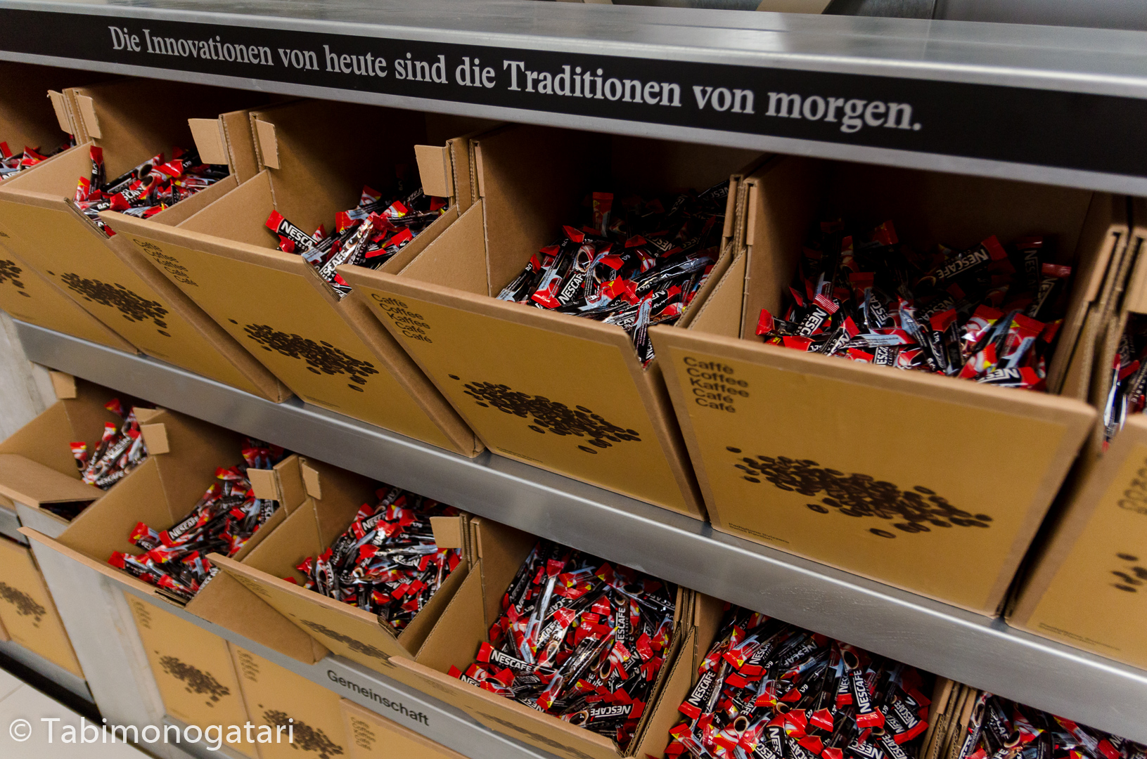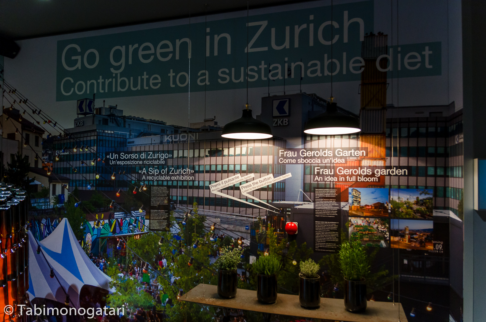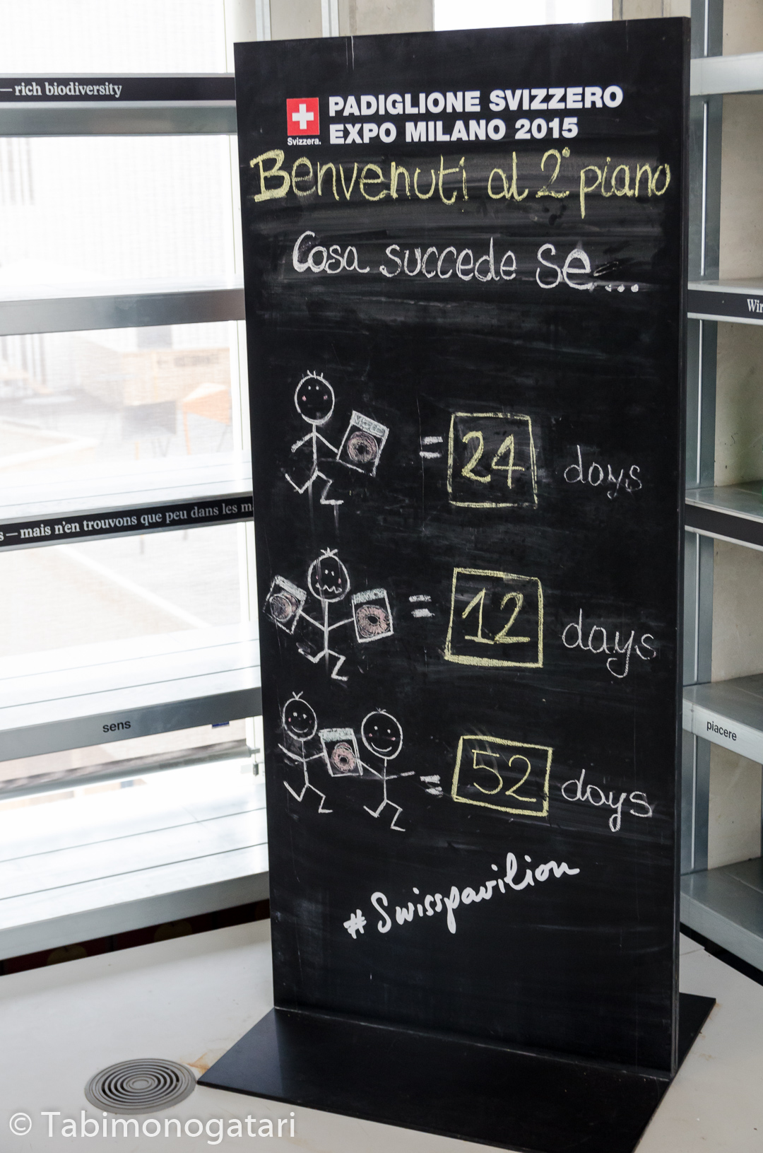 Auch wenn ich das Konzept gelungen finde, fällt mir doch auf, dass die Schweiz ihr Budget verglichen mit anderen Ländern mehr auf Ware als die Präsentation konzentriert hat. In dem innovationsstarken Land hätte ich mehr Ideen und weniger Kaffee erwartet, der wurde übrigens kaum genommen.