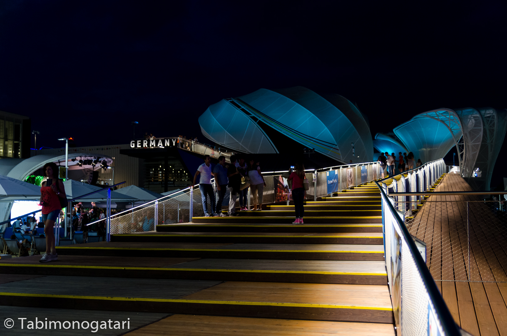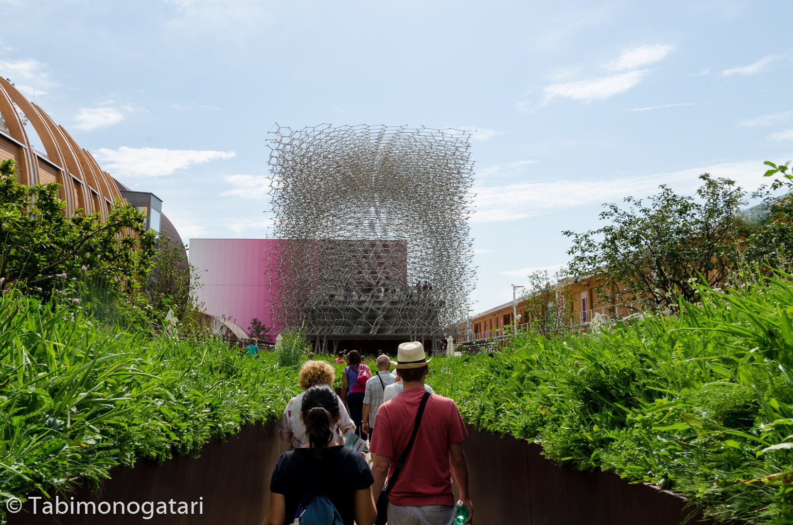 Der koreanische Pavillon war einer der architektonisch auffallendsten. In der Schlange wartete ich geduldig, während Musik vom Popstar PSY aus den Lautsprechern dudelte. Die (Süd)koreaner sehen die Lösung der Welternährung in ihrer eigenen Essenskultur. In dieser steht die Haltbarmachung durch Fermentation und Einlegen im Vordergrund. Auch das bekannte Gericht Kimchi wird so hergestellt. Untermalt wurde das ganze durch Einsatz von moderner Bildschirmtechnologie.