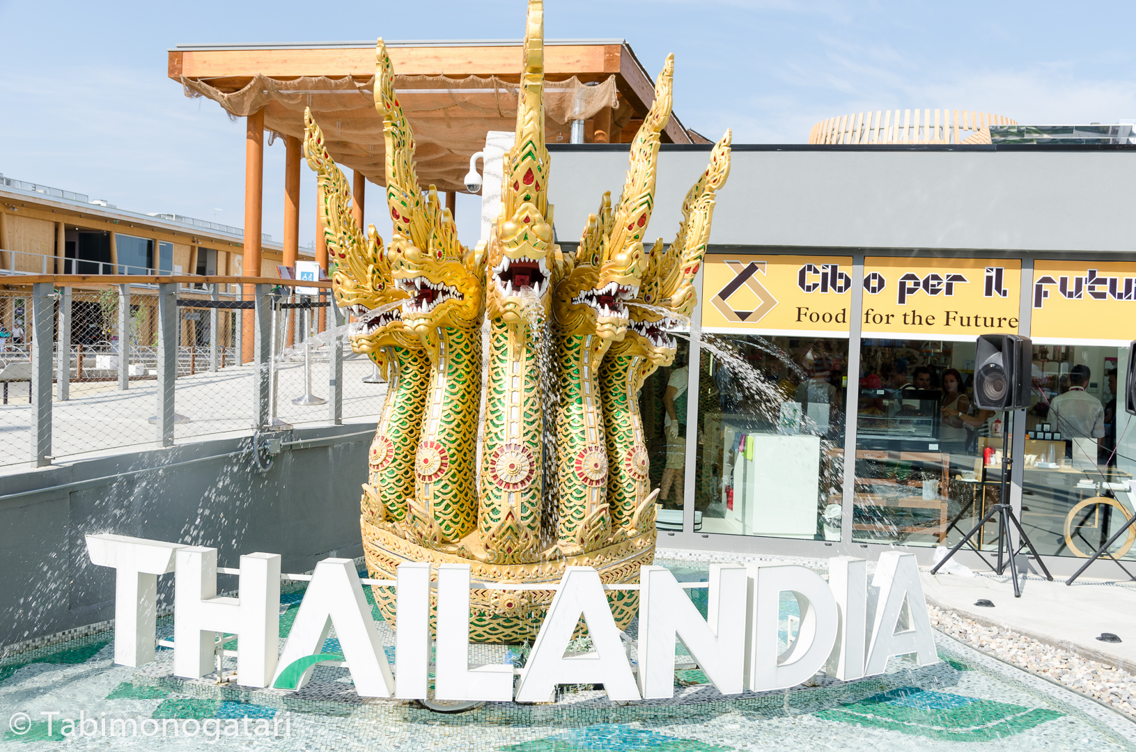 Auch dieser Pavillon erfreute sich grossen Andrangs. Im Wartebereich vor dem Eingang waren ein Dutzend Reissorten ausgestellt, die kurz beschrieben wurden. Jede Sorte hat jeweils besonders gute Nährwerte. Drinnen gab es zunächst einen Imagefilm über die Landwirtschaft des Landes zu sehen, dann konzentrierte man sich auf die beliebte Esskultur und Gerichte. Im letzten Raum wurde erneut ein Film gezeigt, der doch etwas an Propaganda erinnerte. Porträtiert wurde der König Adulyadej, der sich stets für Forschung und Entwicklung der Landwirtschaft einsetzte und Thailand so zu seinem momentanen Fortschritt half.
