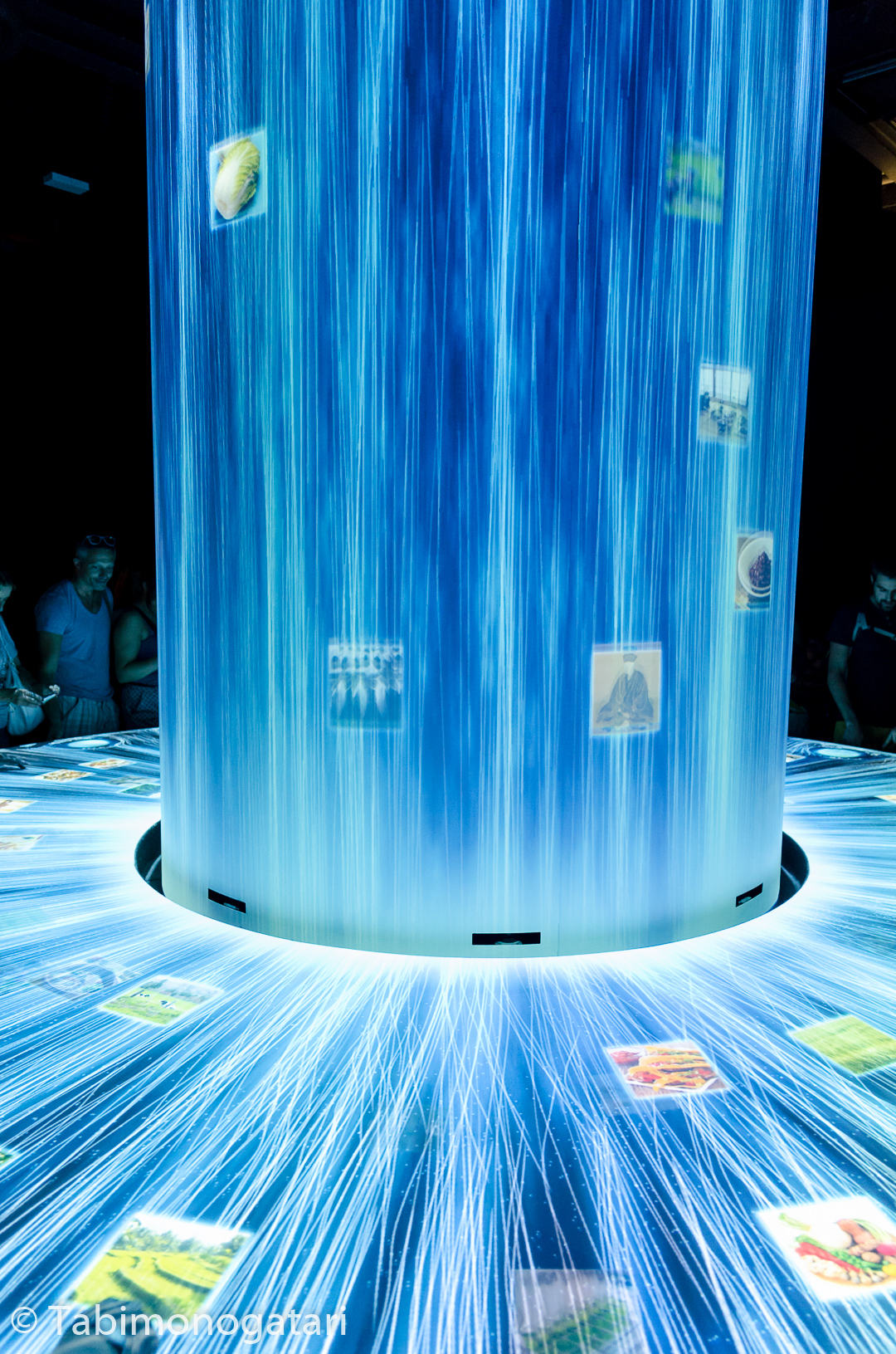 Für mich zählt der japanische Pavillon immer noch zu den futuristischsten und sehenswertesten der Expo. Die Mischung aus neuster Projektionstechnologie, Augmented Reality und Interaktion mit der speziellen App machte es besonders spannend. Die Ausstellung beschrieb vordergründig den Wert der japanischen Essenskultur Washoku und stellt sie als Grund der hohen Lebenserwartung der Japaner dar. Abgerundet wurde die Ausstellung mit dem „Future Restaurant“, in dem sich die Besucher an Tischen zusammenfinden, sich begrüssen sollen und zusammen das Essen geniessen. Dieser Aspekt des gemeinsamen Speisens wurde in keinem anderen Pavillon so deutlich gemacht.