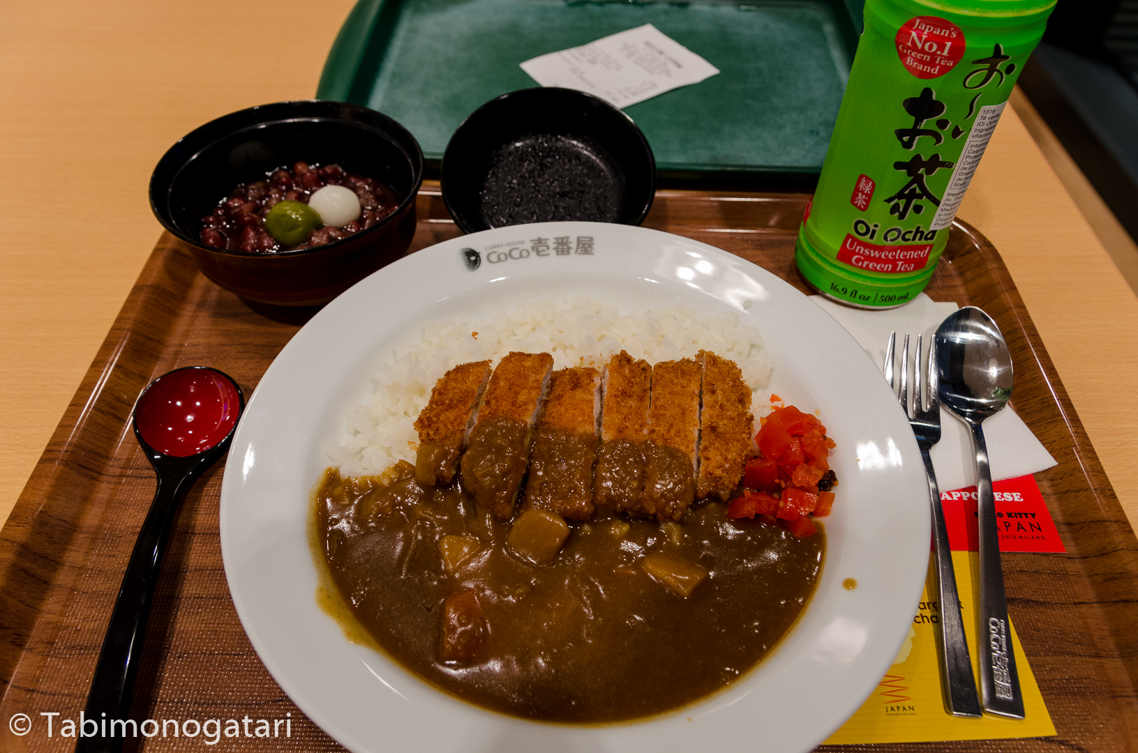 Die Ausstellung und vor allem das „Future Restaurant“ am Ende lassen einem stets das Mund im Wasser zusammenlaufen, so dass ich auch diesmal anschliessend im Restaurant gelandet bin. Nein, eigentlich war das schon seit Stunden so geplant. Diesmal gönnte ich mir Katsukare, oder japanisches Curry und Tonkatsu-Schweineschnitzel. Dazu kam noch ein Dessert aus Azukibohnen und Dango.
