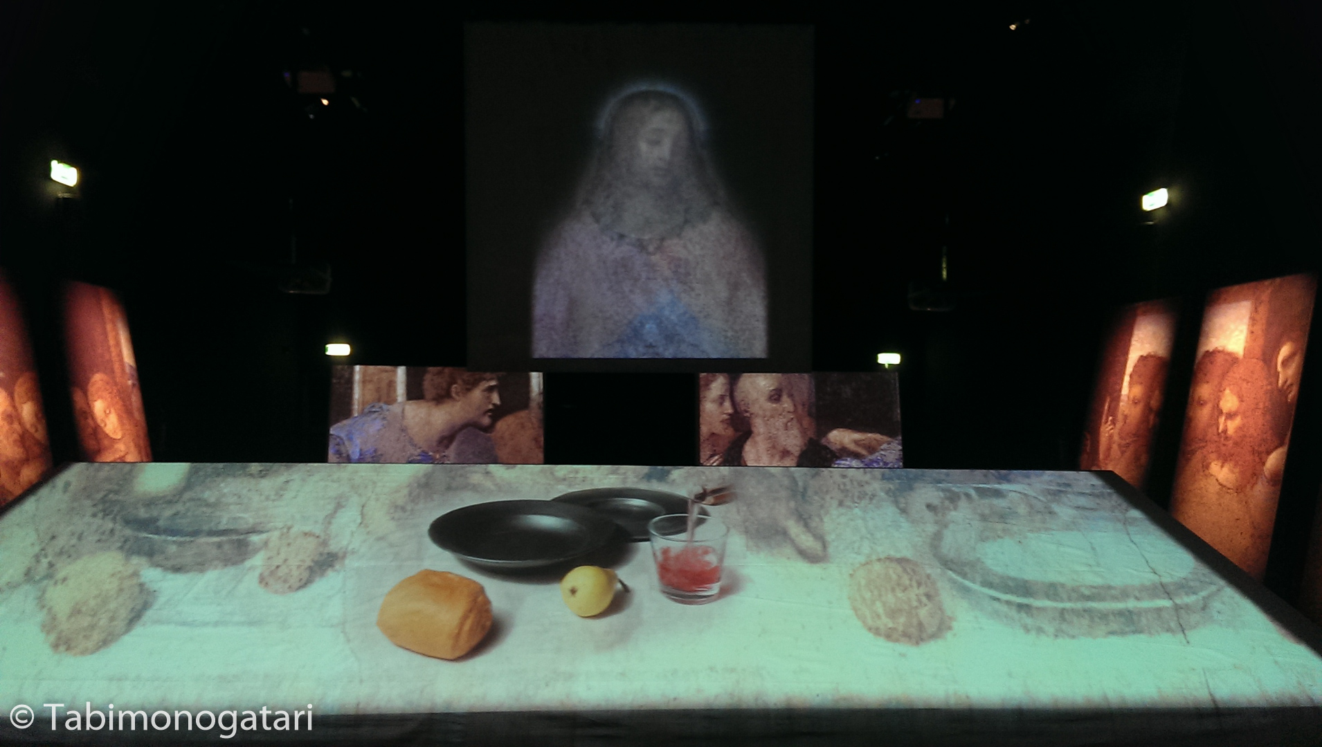 Das berühmte Gemälde des letzten Abendmahls von da Vinci konnte ich leider nicht ansehen, denn die Tickets waren monatelang vorher hoffnungslos ausgebucht. Trotzdem stattete ich der Kirche Santa Maria delle Grazie einen Besuch ab und fand unweit eine Ausstellung, die sich eingehend mit dem Gemälde und seinem Künstler beschäftigte. Die Ausstellung wartete zwar nicht mit Exponaten, dafür aber mit interaktiven Inhalten auf. Durch Handgesten öffneten sich Bücher und Schriftrollen auf projizierten Flächen und eine englischsprachige Stimme erzählte über Technik, Bildkomposition und Hintergründe.