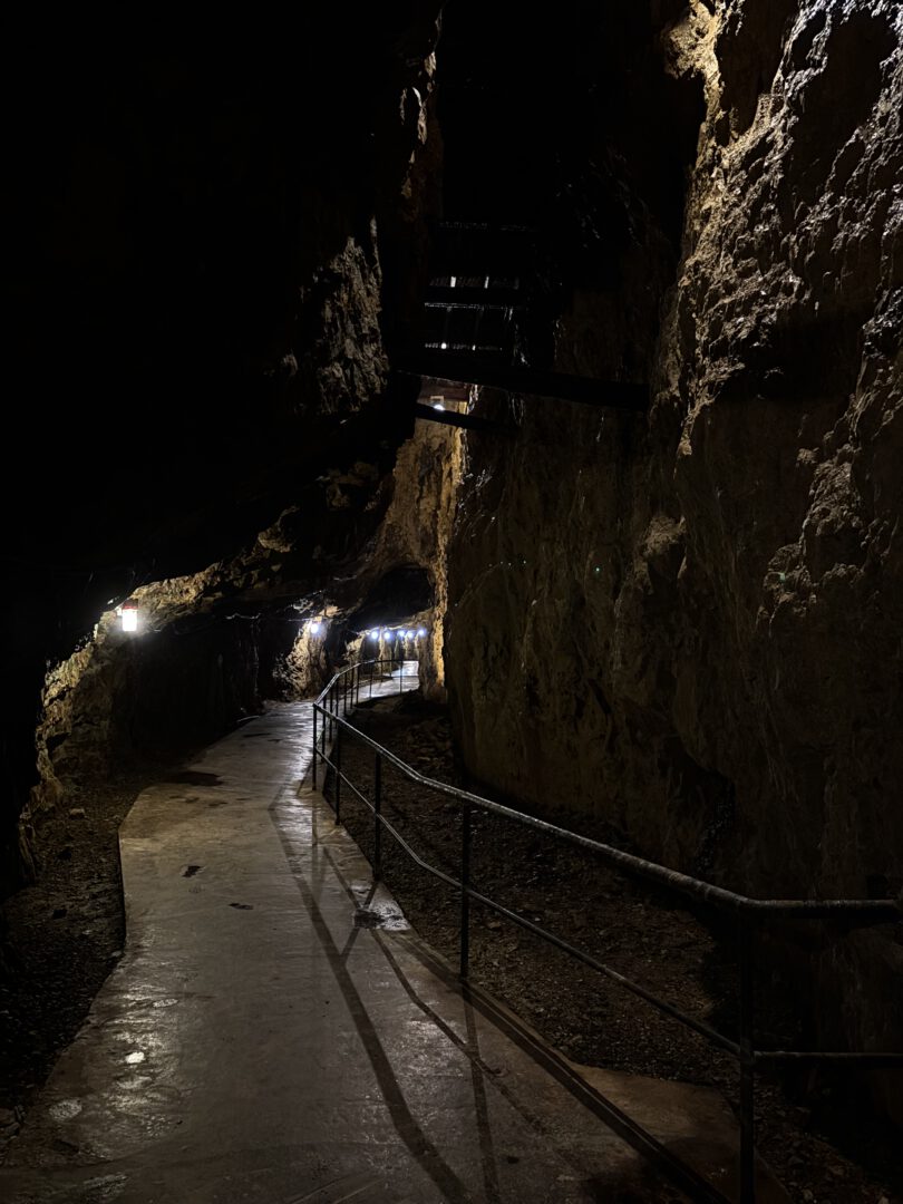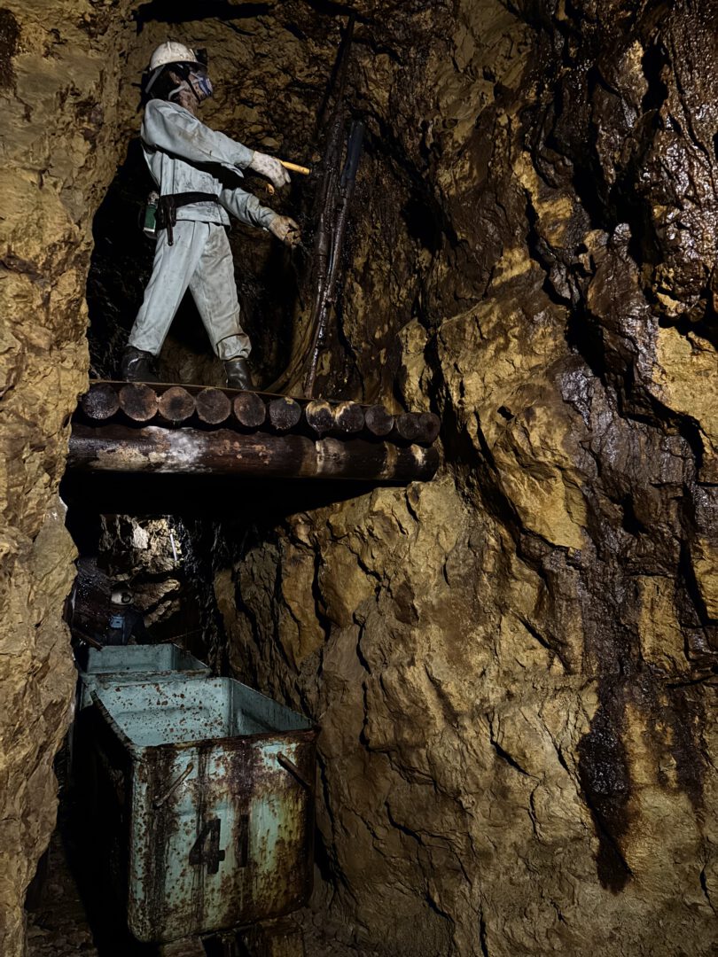 Mining is no longer active, but the site played an important role in Japan’s metal production for centuries. Roughly 1.7 kilometers of tunnels are open to visitors, and as we walked through them, we passed displays explaining the tools and techniques used in different periods. Over many centuries, miners dug tunnels and shafts across multiple levels, creating a vertical system that reached roughly 450 meters in height, the equivalent of about 15 stories stacked on top of each other, all carved out using simple tools. In some sections, the exposed rock walls are incredibly old, formed millions of years ago, and stepping inside felt like entering a quiet world deep beneath the mountains.