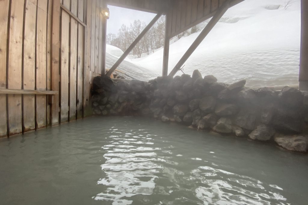I also visited the second bath, which overnight guests could use freely. This smaller onsen had a window facing the inner courtyard and the same silky, milky water as the main bath. During certain hours, parts of the onsen are also open to day-trip visitors.